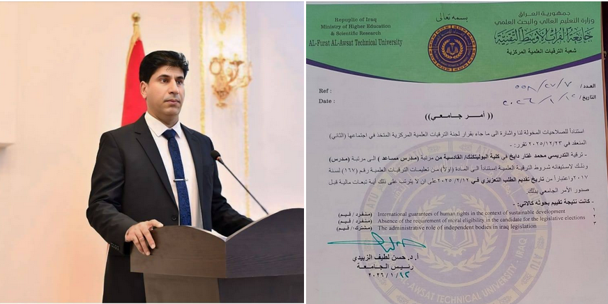 Head of the Quality Assurance and University Perfo... Assistant Professor Dr. Afrah Rahim Eidan, Head of the Quality Assurance and University Performance Division at Al-Diwaniyah Technical Institute, has been sele...