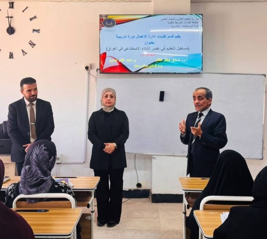 Department of Business Management Techniques Organ... The Department of Business Management Techniques at Al-Qadisiyah Polytechnic College, a constituent of Al-Furat Al-Awsat Technical University, organized a trai...