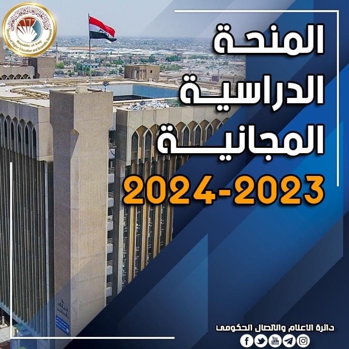 التعليم تعلن إطلاق التقديم إلى المنحة المجانية للت... تعلن وزارة التعليم العالي والبحث العلمي إطلاق قناة التقديم إلى المنحة المجانية لتخصصات المجموعة الطبية في الجامعات والكليات الأهلية للعام الدراسي 2024/2023.pla...
