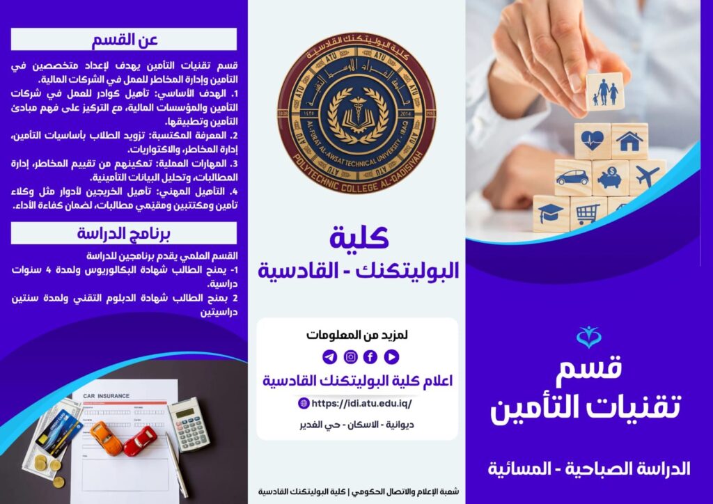 تعلن كلية البوليتكنك – القادسية عن فتح الدراسة المسائية في قسم #تقنيات_التأمين للعام الدراسي (2025 – 2026).