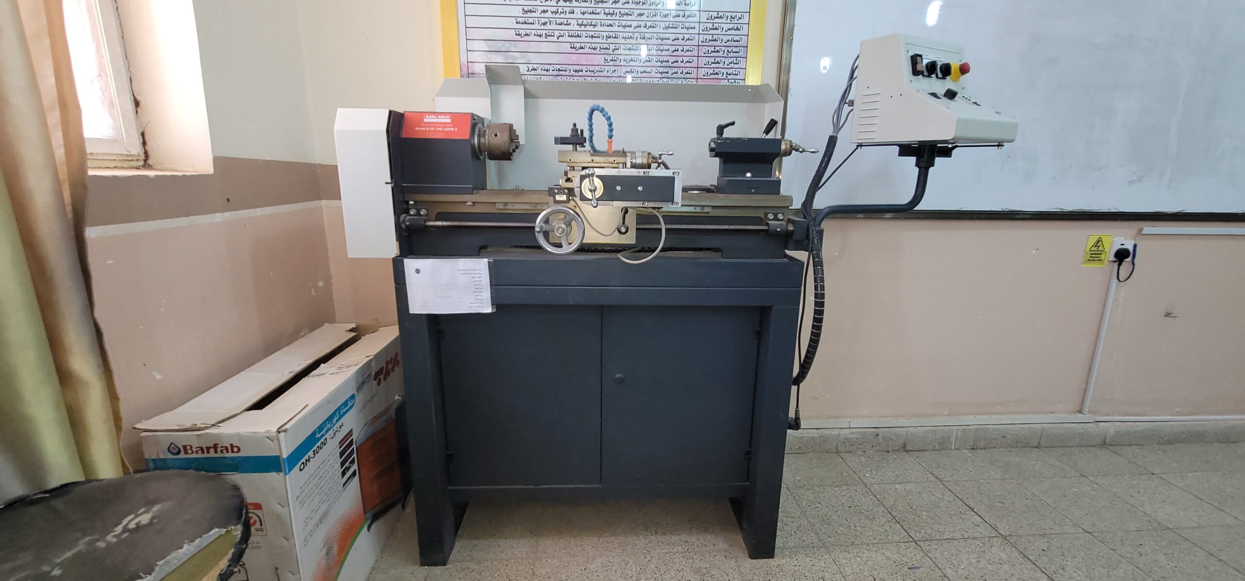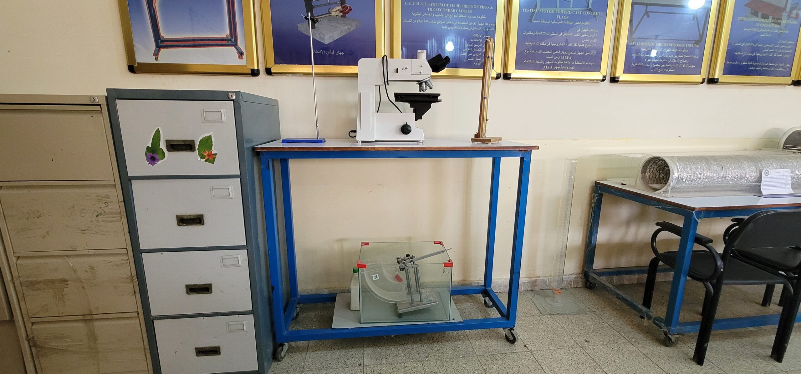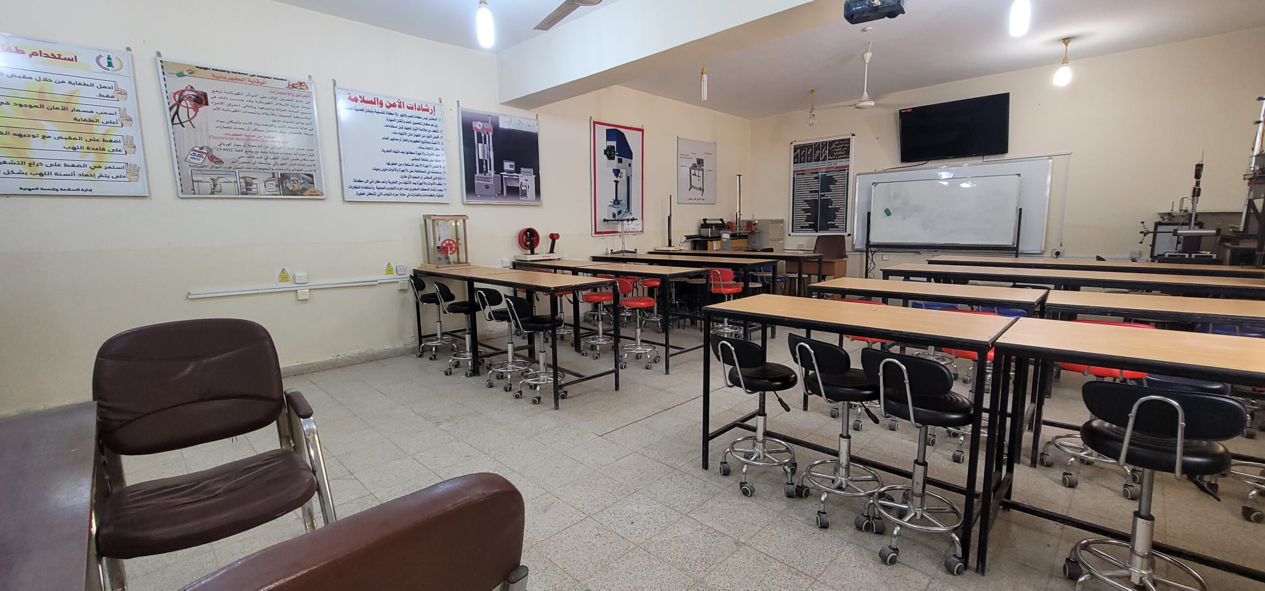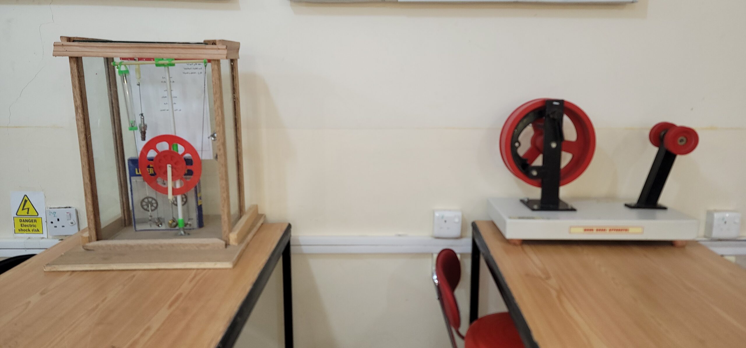 يحتوي المختبر على مجموعة من الأجهزة الميكانيكية التعليمية، ويهدف إلى تدريب الطلبة على المهارات العملية وفهم القوانين الفيزيائية.