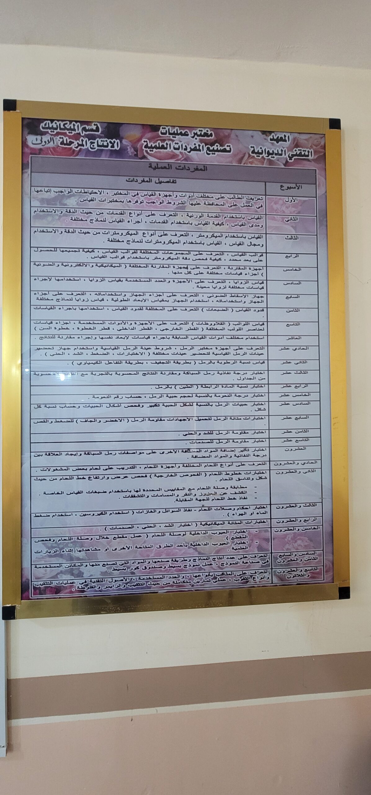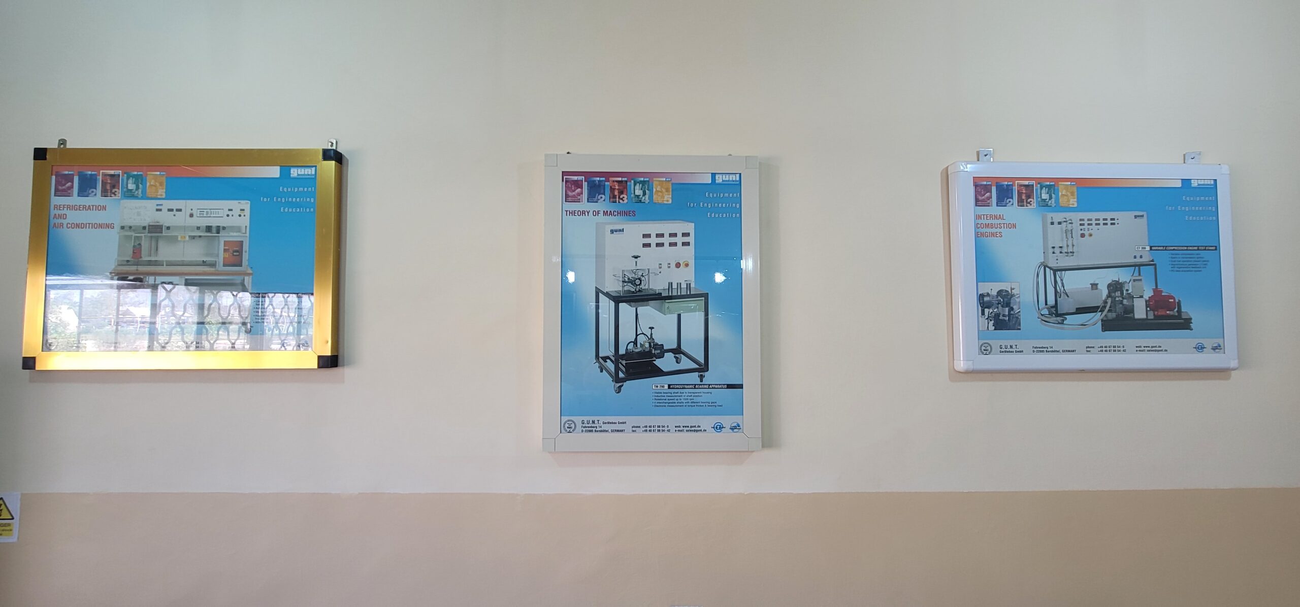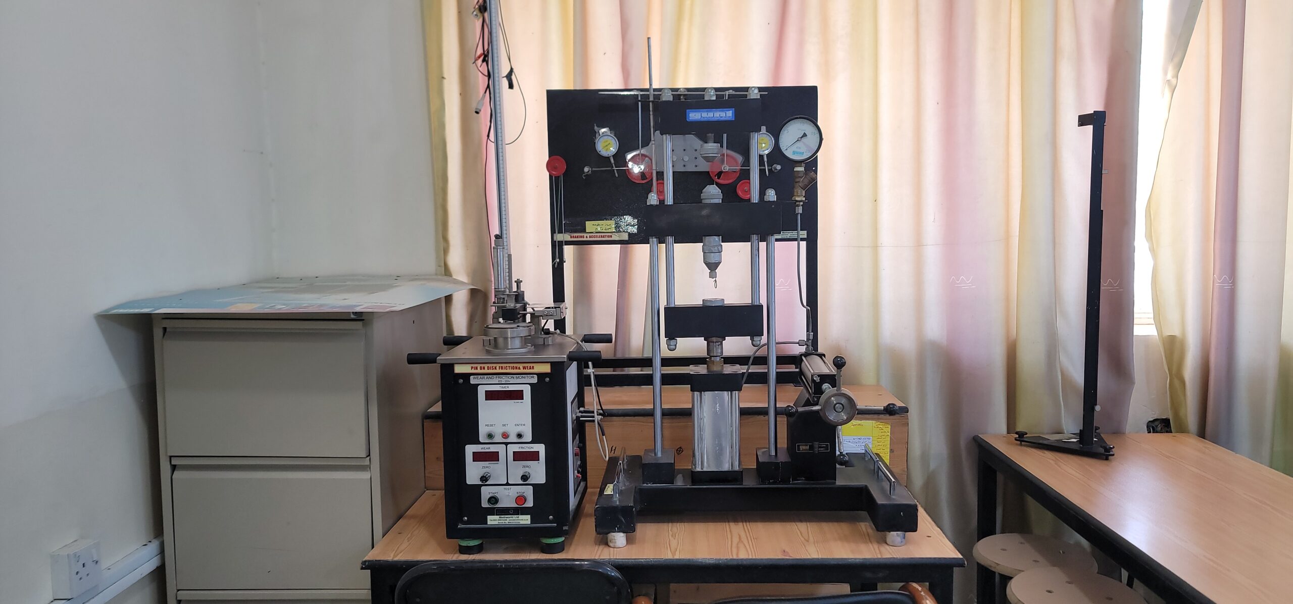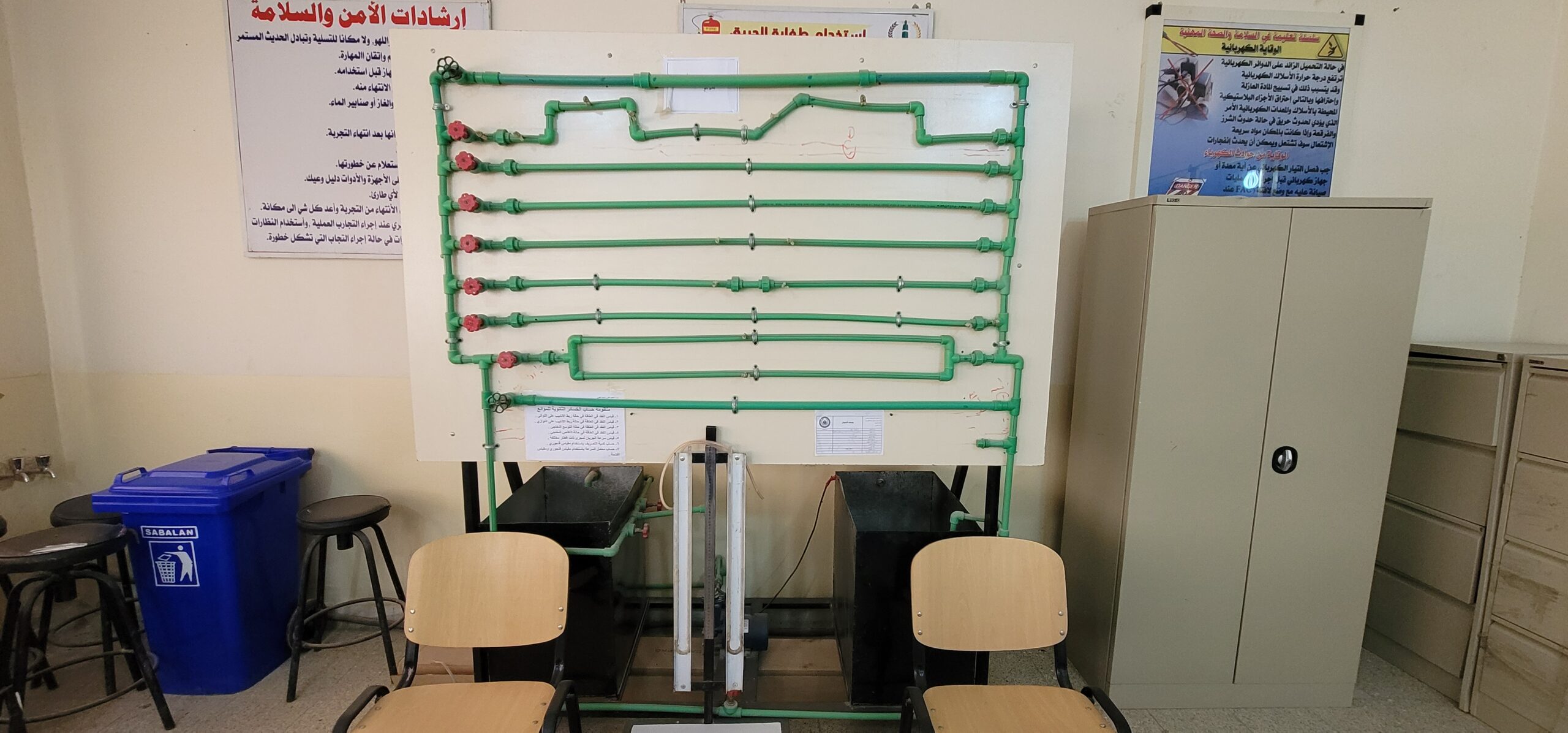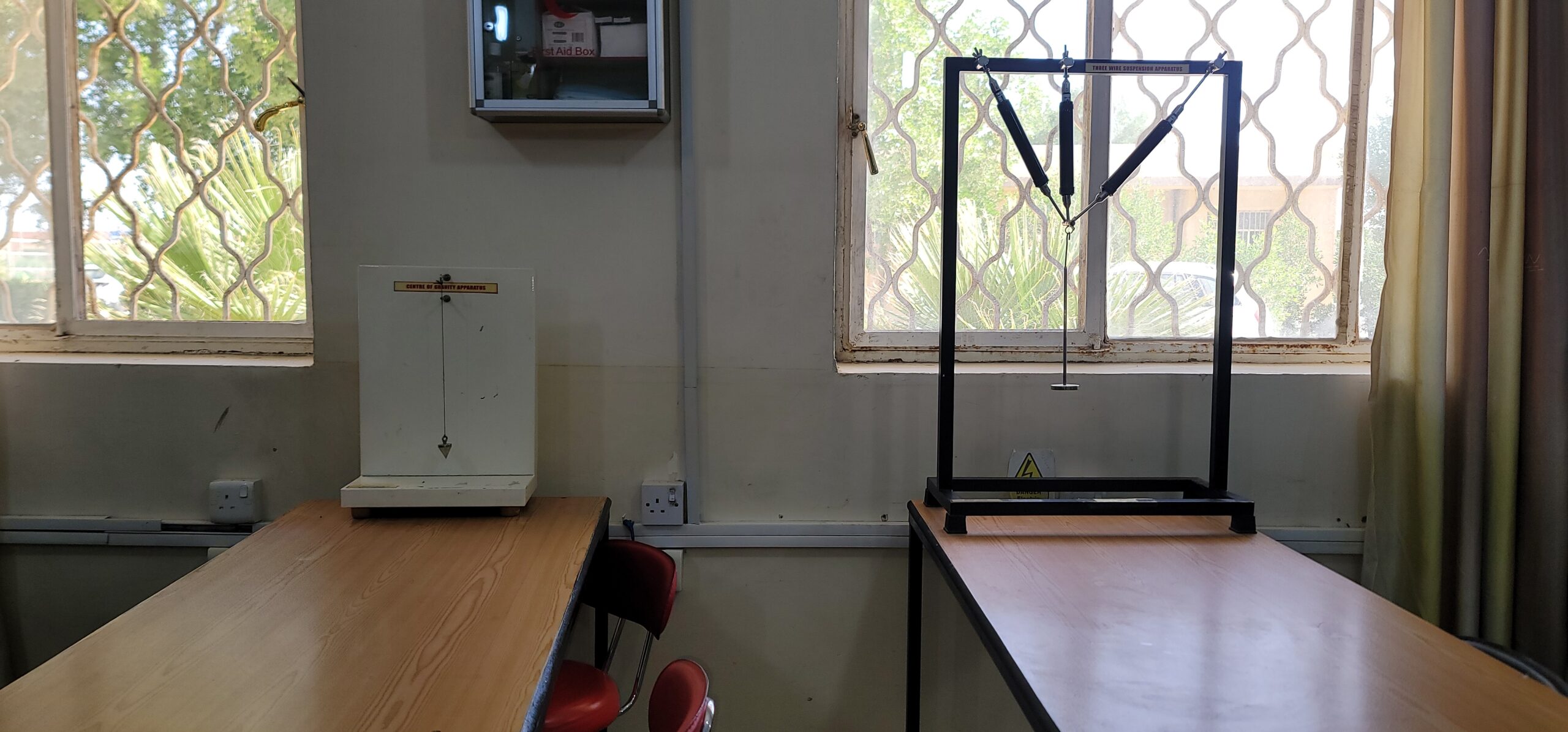 يحتوي المختبر على مجموعة من الأجهزة الميكانيكية التعليمية، ويهدف إلى تدريب الطلبة على المهارات العملية وفهم القوانين الفيزيائية.
