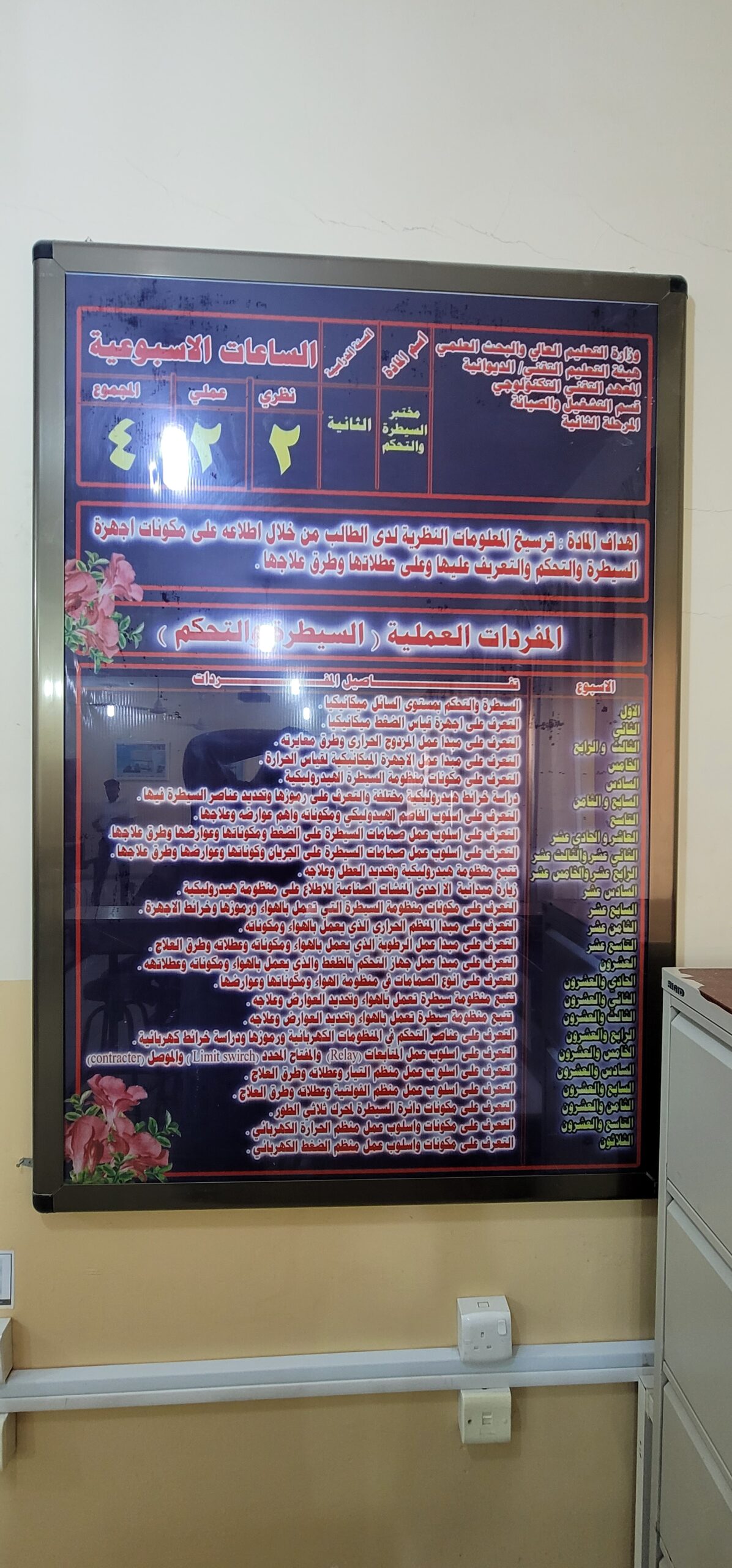 يحتوي المختبر على مجموعة من الأجهزة الكهربائية ووسائل الإيضاح، ويهدف إلى تدريب الطلبة على استخدام الأجهزة وربط وتشغيل الدوائر الكهربائية.